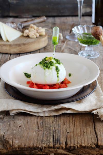 Ensalada de Mozzarella con pesto de espinacas y pistachos