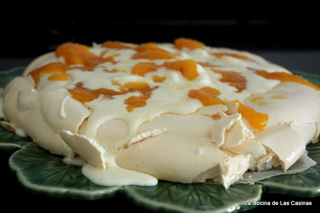 Pavlova con Crema de Chocolate Blanco y Melocotón