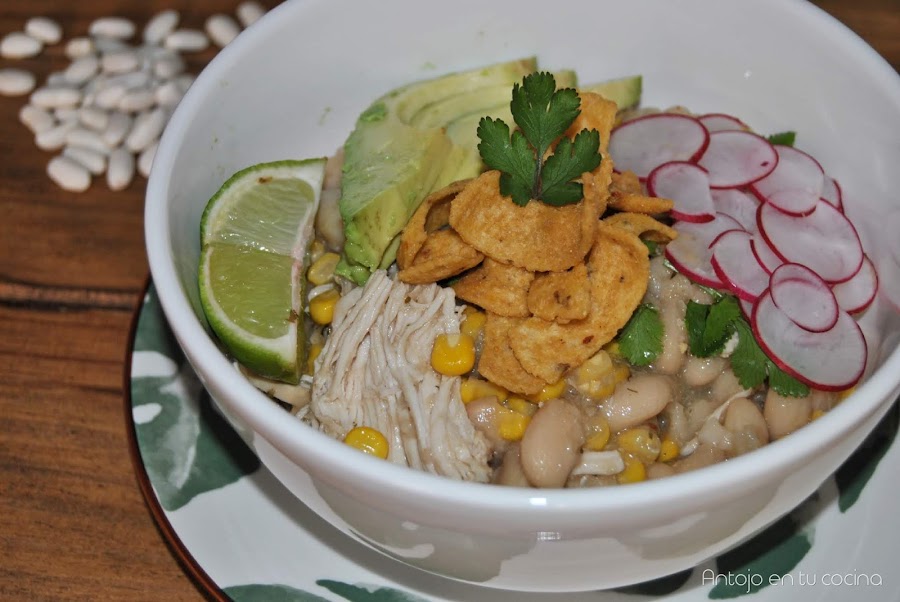 Alubias blancas con pollo del blog Antojo en tu cocina