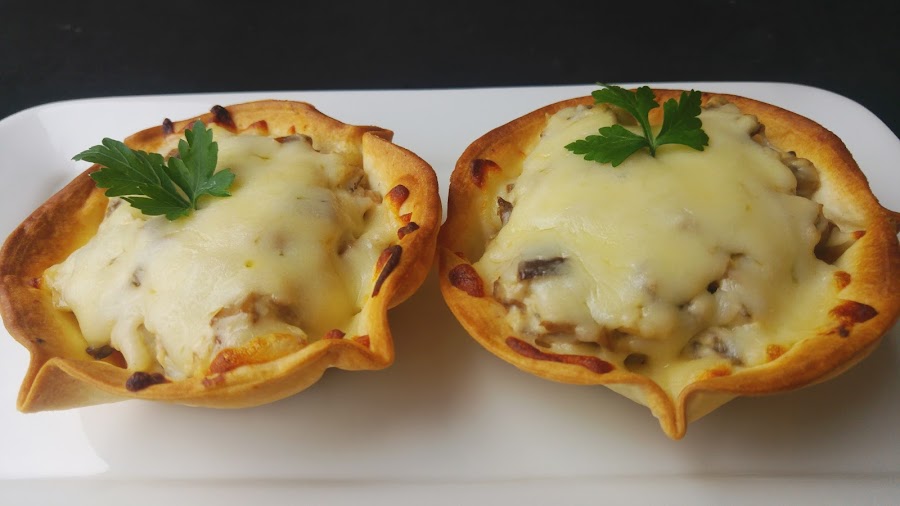 Marisol nos cuenta la tradición que tienen en el país vasco con las sociedades, locales grandes con cocina donde se reunen amigos y familiares para comer, ella nos presenta estas obleas de empanadillas rellenas de setas y presentadas como canapés, podemos leer la receta en el blog El menú de mi cocina.