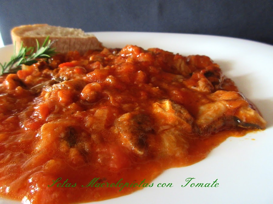 Isa nos cuenta que tiene la suerte de tener un amigo que le gusta mucho el monte, a base de estudios y experiencia se hizo todo un experto en setas, así que de vez en cuando le regala, estas setas macrolepiotas con tomate es una receta de su suegra, podemos verla en el blog Cocina con Reina.