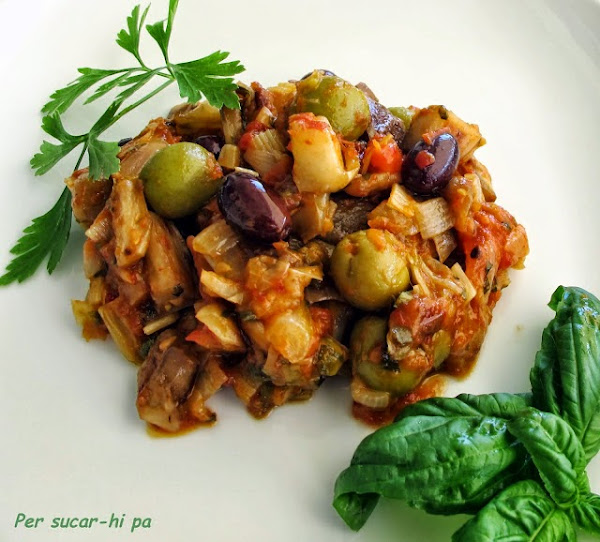Cerramos los ojos y viajamos hasta la bella cuidad de Palermo capital de la Isla de Sicilia donde nos sentamos y degustamos y plato tan exquisito como sencillo y sorprendente Per Sucar-hi pa nos sorprende con este plato de Caponata. Desde este blog nos cuentan que es un clásico exponente de la cocina siciliana, la Caponata es uno de esos platos que por si solo evoca el sabor mediterráneo, tiene puntos comunes con el Ratatouille Provenzal, la Samfaina Catalana, el Pisto y otros preparados similares.