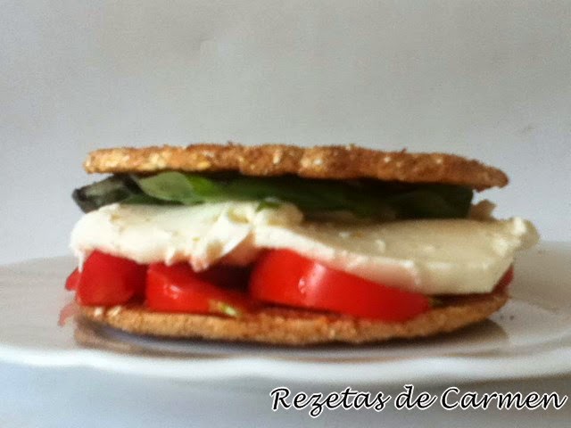 Desde Rezetas de Carmen nos llega este Sandwich Caprese una versión de la ensalada del mismo nombre. Se dice que su origen se debe a un patriota que quiso crear un plato cuyos colores recordaran a la bandera italiana, de ahí el rojo del tomate, el verde de la albahaca y el blanco de la mozzarella, y se inventó en Capri, por eso la llamó así.