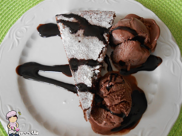Lupe, del blog Bouganvilla Cake, nos trae esta deliciosa Torta Caprese que para ella es una "versión" chocolateada de nuestra Tarta de Santiago