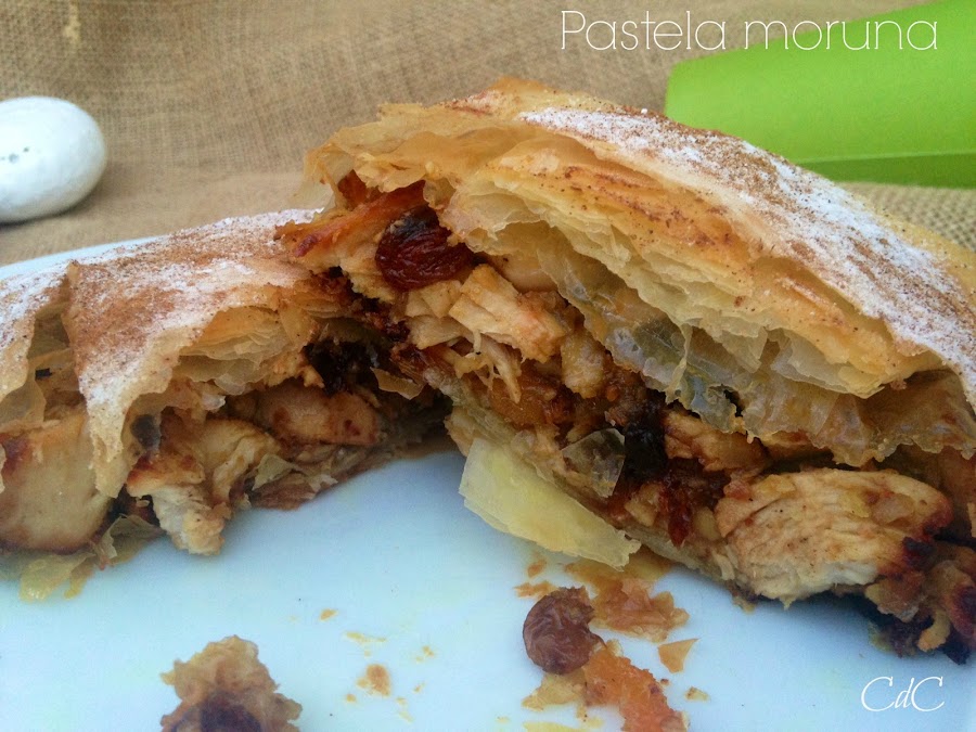 Amalia, del blog Cuadernos de cocina, nos ha preparado una deliciosa pastela moruna. Un plato que sorprende por su contraste de sabores y que ha triunfado en su casa.