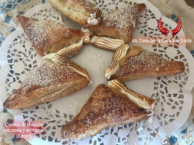 Cuernos de hojaldre con crema y merengue para Los tres pelos de oro del diablo