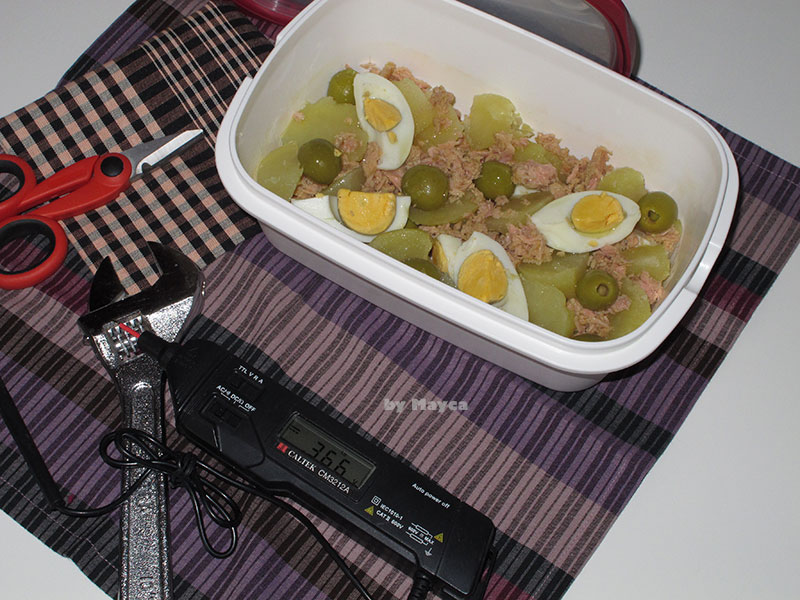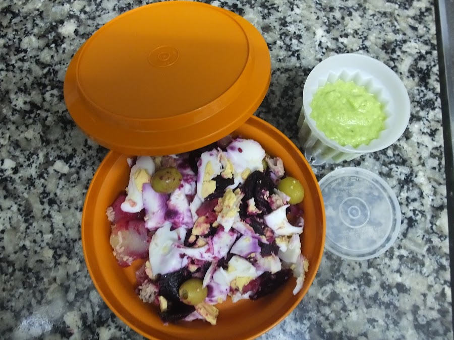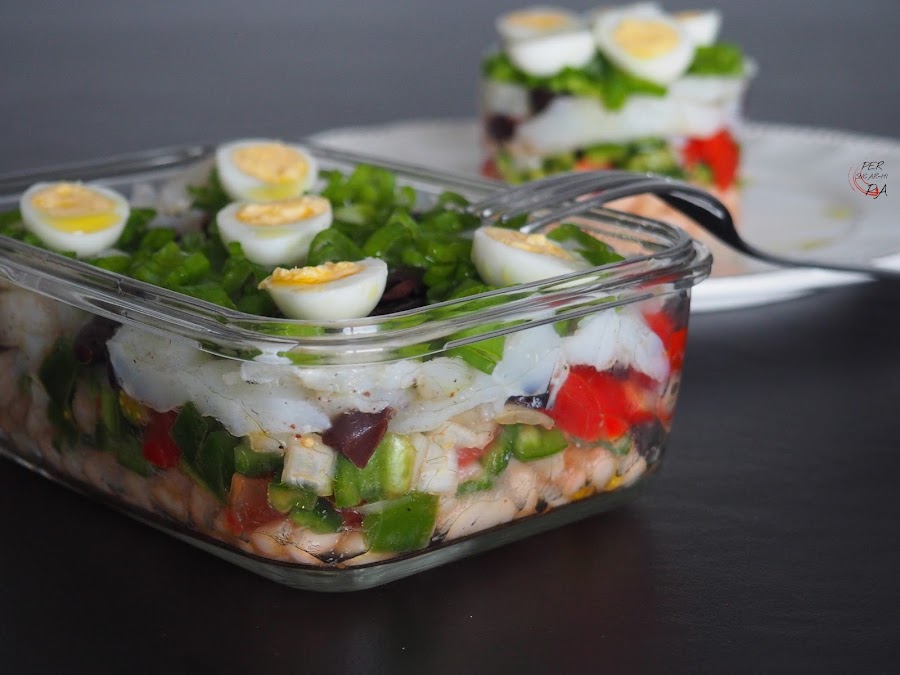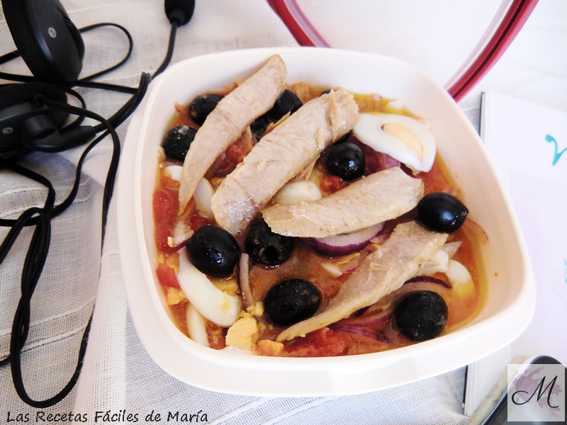 Luz, de Cocinando en un abril... ha llenado su táper con una ensalada campera que acostumbra a llevar a la oficina cuando empieza a llegar el calorctio, ¡deliciosa!