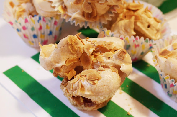 Como solo salía las cantidades de los ingredientes no me quedó otra que empezar a experimentar, ya que como os imaginaréis este tipo de recetarios es muy común no tener las cantidades ni el modo de preparación ¡Al menos tenía las cantidades!. Total que realicé tres intentos, los dos primeros fueron un fiasco como podéis comprobar... Las clarines son merengue cocido al horno con almendra troceada, muy similar a los suspiros de merengue, podéis ver que esto menos merengue al horno me salió de todo...