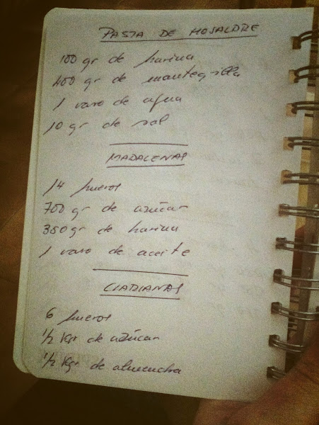 La semana pasada mi amiga Analía nos trajo Corbatas de Unquera por su paso por Cantabria. Cuando le dí el primer mordisco, el glaseado de azúcar con almendra que lleva encima me recordó tanto a unas magdalenas que comía de pequeña. ¡Eran deliciosas! Mi madre solía comprármelas de vez en cuando en la panadería que solíamos ir, se llamaban "Clarianes". Se me metió entre ceja y ceja que tenía que conseguir prepararlas. Enseguida se me encendió la bombilla, y es que hacía unas semanas que habia tenido en las manos (y fotografiado) el recetario de mi madre con las recetas viejas de mi abuela. ¡Bingo! Ahí estaba...