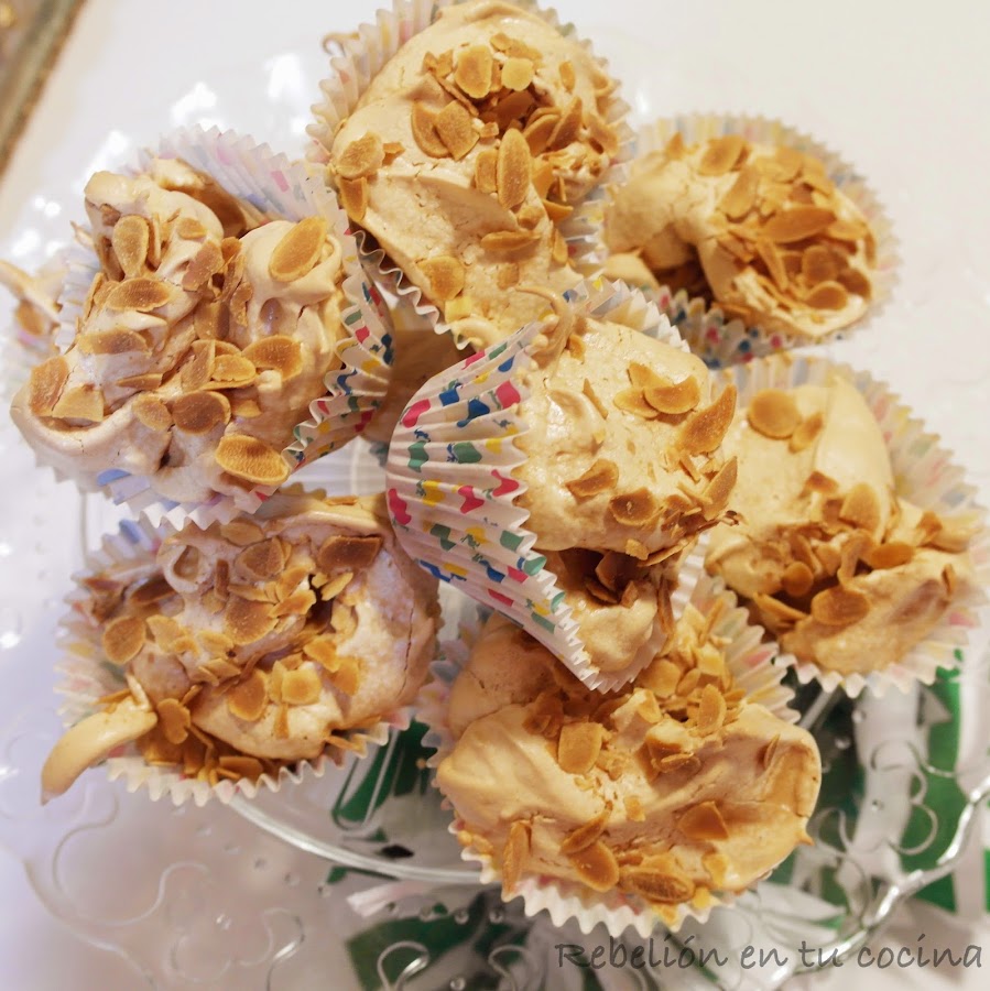 Realmente cometí también tres errores de novata... El primero no monté bien el merengue. En realidad lista de mi decidí hacerlo a mano!! Como si todos los días lo montará!! Y sucedió lo que tenía que suceder ¡qué no se montó bien! Y cuando las horneé quedaron como si fueran magdalenas aunque al no llevar levadura química pues no subieron. El segundo intento le pedí a una amiga la batidora para montar las claras y esta vez el aspecto que tenía cuando lo metí al horno era el que debía. De hecho conseguí hornearlas bien y todo!! Pero no os creeréis lo que me paso...cuando ya tenia todo preparado para hacer las fotos fui a cortar una de ellas por la mitad para que vierais como quedaban por dentro y ¡VAYA DESASTRE! No se habían hecho bien las había tenido poco tiempo al horno y ahí va el segundo error!!!! ¡Las prisas no son buenas! Encendí el horno a toda leche, ale 250º con parrillas y ventilador ¡A DARLO TODO! eso si pensé lo dejaré 10 minutos sólo, y me marché al ordenador (tercer error). En menos de 5 minutos olía a quemado... jajaja. Vaya lo curioso de todo es que a pesar de los conflictos no hizo falta tirar ninguna a la basura al menos comestibles estaban...
