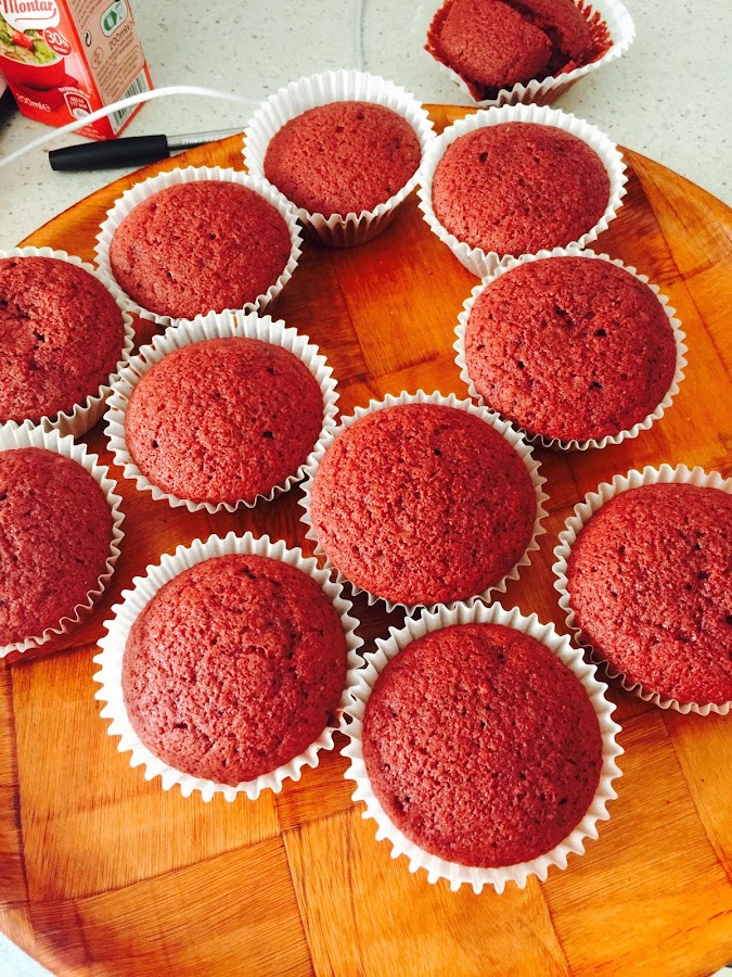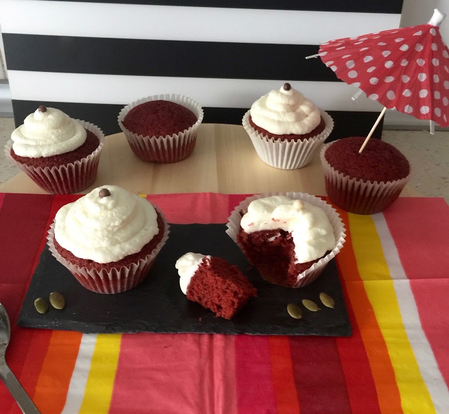 O en esta ocasión hice cupcakes. Y listo... a decorar con lo que mas te guste! Nata montada (crema de leche), crema de queso, dulce de leche, lo que quieras!!