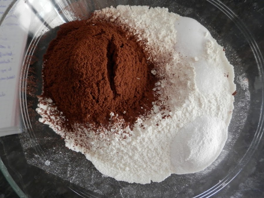 En un bol tamizaremos la harina, el bicarbonato, la sal, la levadura y el cacao, mezclamos bien y reservamos.