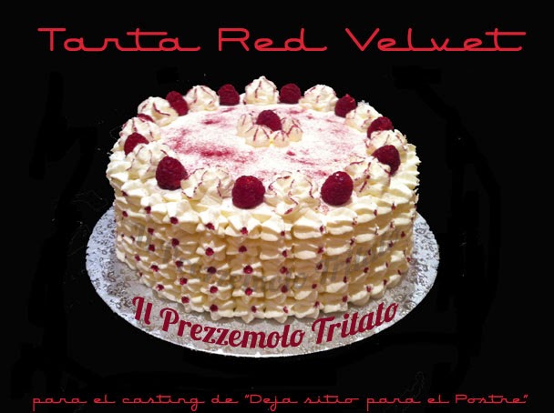 Mi relación con esta tarta es confusa y hasta peculiar, la primera vez que la intente hacer no me salio, la segunda vez como todos sabéis la lleve al Casting de Deja Sitio para el Postre, la volví a repetir para el cumpleaños de mi abuela y hoy por fin he conseguido el color rojo deseado del bizcocho, el sabor exquisito, el corte espectacular y el diseño impresionante, no será la ultima vez que la publique y como hoy es San Valentín que mejor día para hacer esta deliciosa y maravillosa tarta, con su color rojo de enamorados y su delicioso sabor. Espero que os guste por que a mi me fascina.