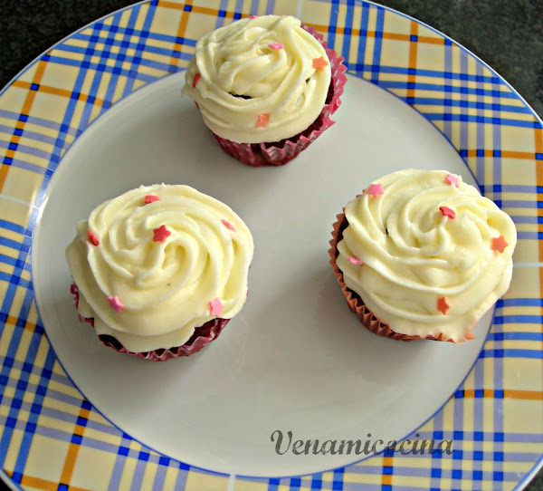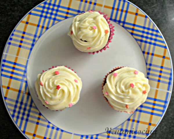 Para la crema de queso, batir la mantequilla blanda con el azúcar glass , añadir una cucharada de leche para que se mezcle bien e ir agregando poco a poco el queso frío. Seguirbatiendo para que la crema sea homogénea,con una textura cremosa pero firme.