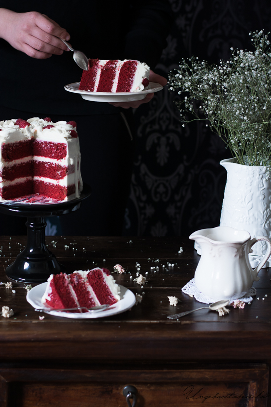 Tengo que contaros que esta Tarta Red Velvet se la hice a mi suegra para su cumpleaños, que yo no pude probarla porque estoy a dieta, pero a mí me devolvieron el plato vacío, con lo que deduzco que gustó muchojajjaja.