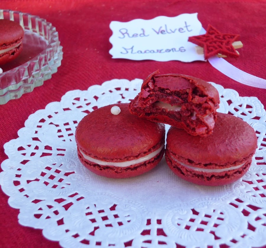 Hace tiempo que tenía ganas de hacer red velvet en versión macarons y como tenía un poco de crema que me había sobrado de una tarta, aproveché la ocasión. Riquísimos, con toque de chocolate y vainilla en las conchas y el relleno de crema de queso.