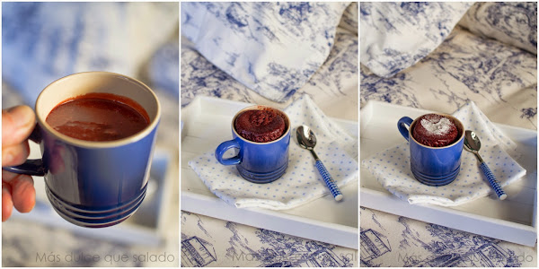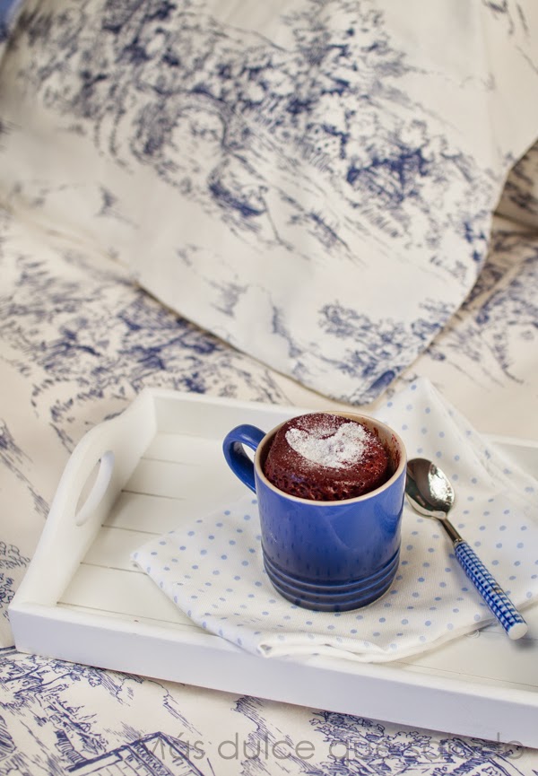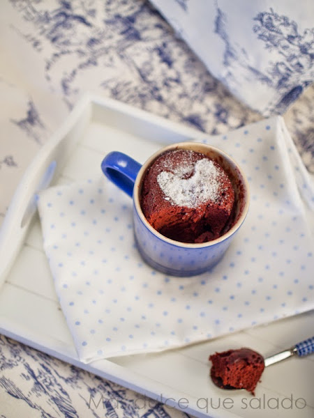 Por eso creo que este mug cake es el detalle perfecto para ese u otro día en el que quieres sorprender a tu media naranja. Un desayuno perfecto, nada más abrir el ojo , encontrarte con un red velvet mug cake calentito, que además podemos compartir.