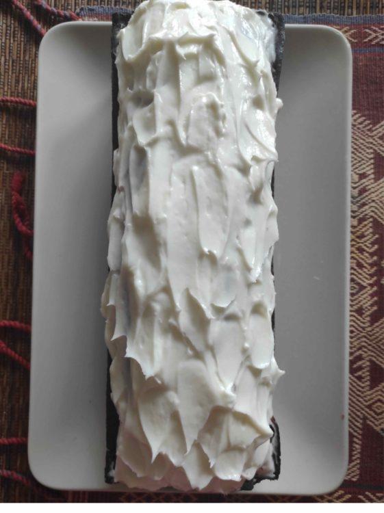 Bate el queso crema con el azúcar glas hasta que quede liso y perfecto para poner de cobertura.Cubre con el frosting y sirve..Disfruta…