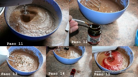 Paso 11, y con ayuda de las varillas lo mezclamos todo bien para que quede homogeneo, lo podeis mezclar a mano si no teneis maquina, no pasa nada sale igual de rico pero hareis mas brazo jejeje
