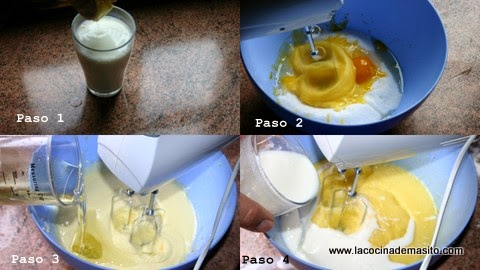 Paso 3, incorporamos el aceite de girasol y lo batimos tamobien