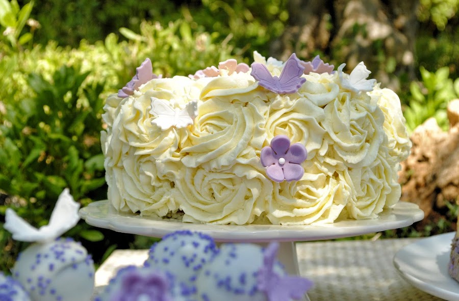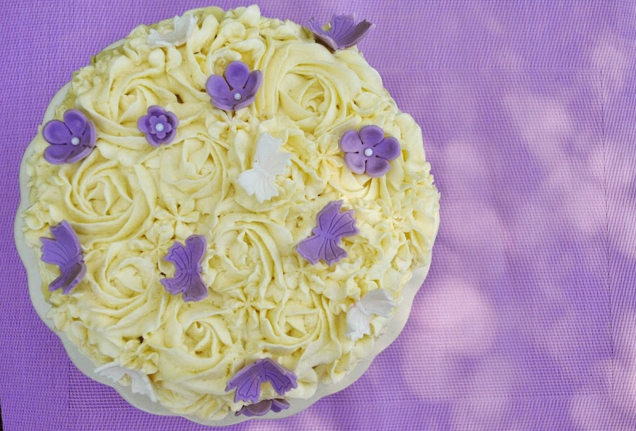 Para hacer las flores y mariposas?a petición de la cumpleañera. Usé fondant lila y unos cortadores?