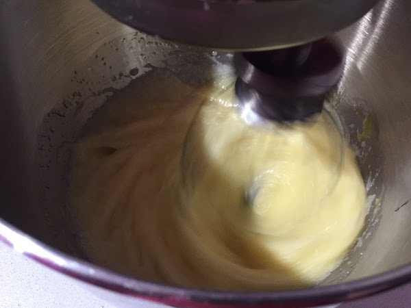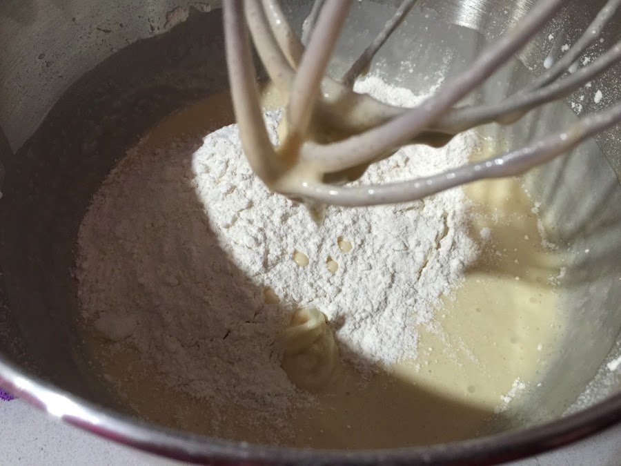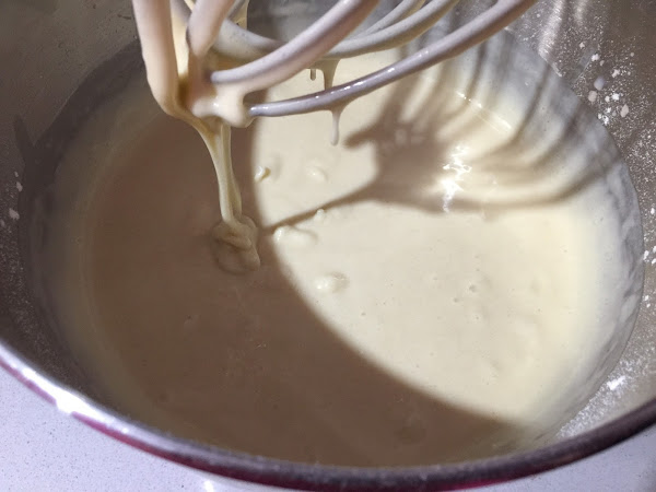 7. Y por último la mitad de la leche "buttermilk" y mezclamos bien.