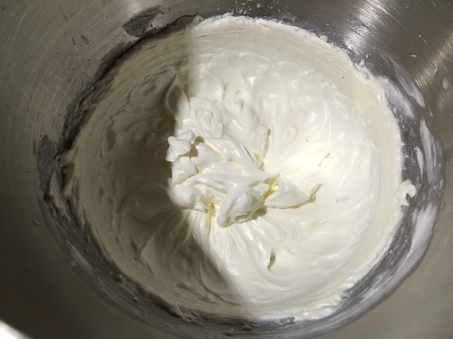 14. Cuando haya enfriado por completo podemos añadirle el frosting de queso. Batimos los 200g de queso philadelphia junto con los 100g de azúcar glass. Interesa batir muy bien durante un buen rato, así ganará volumen y quedará más cremosa.