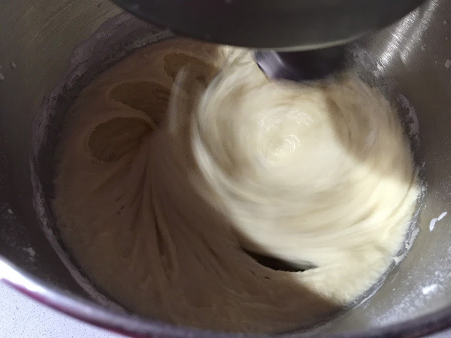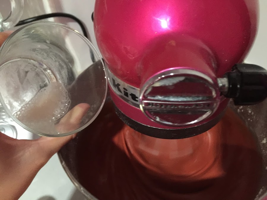 10. Para acabar mezcla en un vaso la cucharadita y media de vinagre blanco junto la cucharadita y media de bicarbonato. Justo cuando empiece a burbujear añádelo a la masa.
