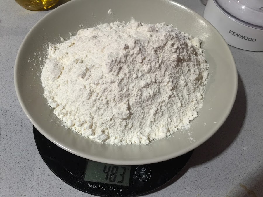 3. Juntamos la harina con la sal y el cacao en polvo. A mi se me olvidó poner el cacao el polvo así que lo añadí al final de la receta. Mucho mejor aquí. Tamizamos todos los sólidos.