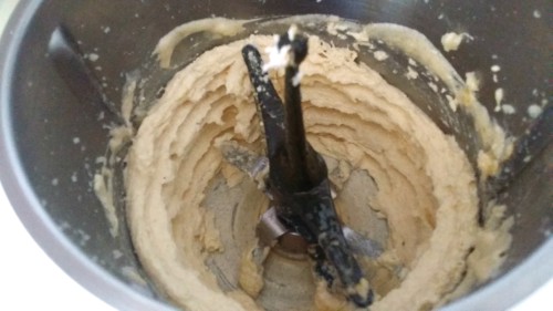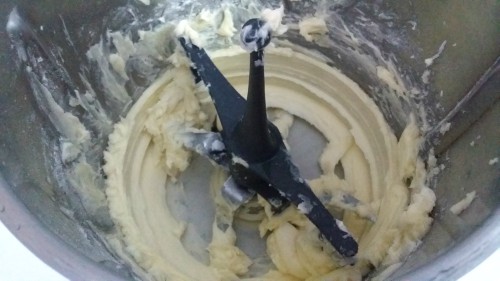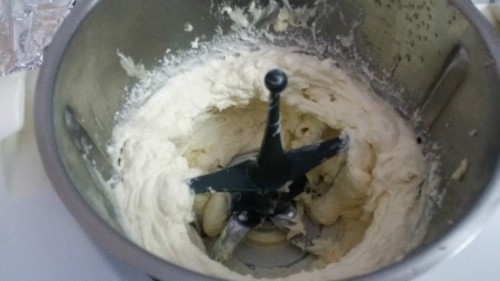 - Batimos la mantequilla con el azúcar, primero a velocidad media y luego a velocidad alta hasta que blanquee.