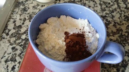 - En un bol juntamos la harina, el cacao y la levadura. Tamizamos y reservamos.