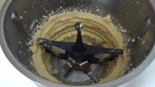 Mezclamos a velocidad media hasta que se integre completamente. La mezcla parecerá cortada pero no os preocupéis, es por la cantidad de líquido añadida.