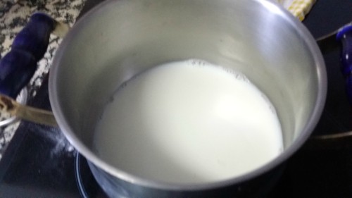 - Calentamos ligeramente la leche (en el caso de que la tengáis en la nevera)