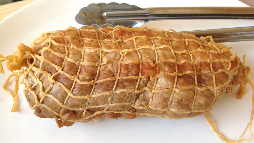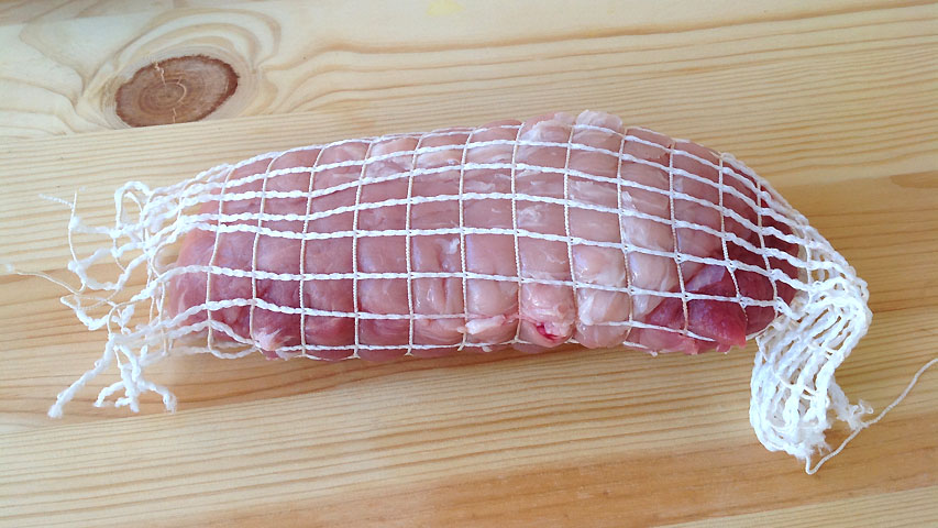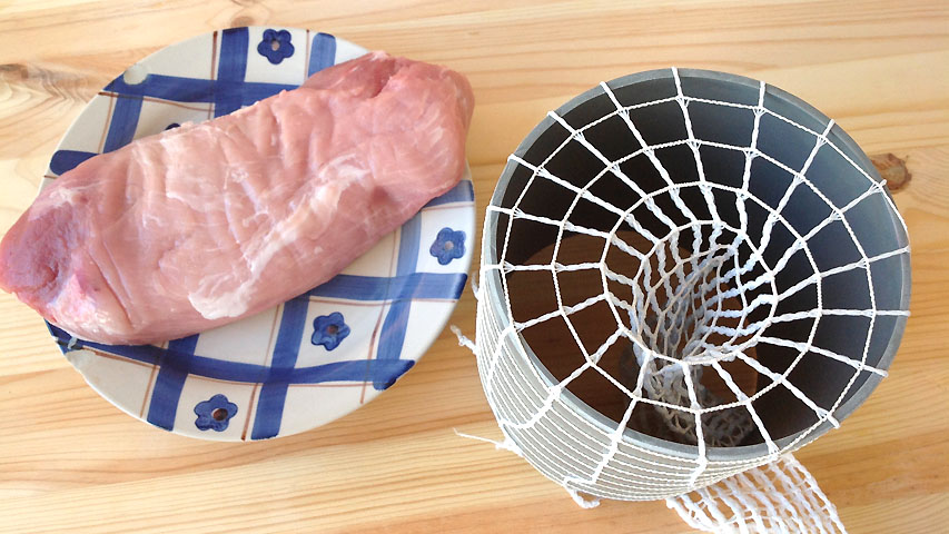 Con un trozo de tubo de PVC y una malla que venden en tiendas especializadas de carnicería se "ata" muy fácilmente el redondo.