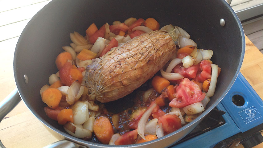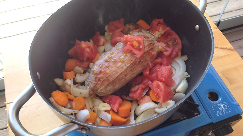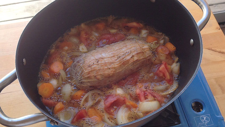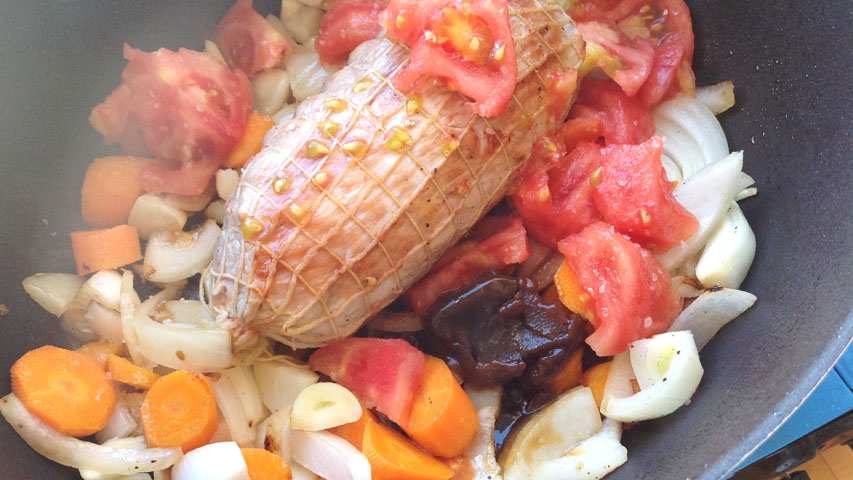 Tapa la olla y deja cocer a fuego lento durante una hora. A mitad de cocción puedes darle la vuelta a la carne.