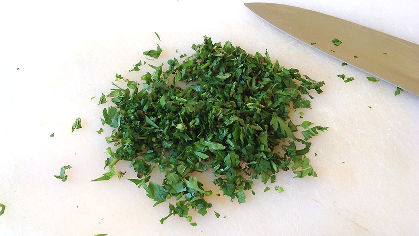 Las hierbas picadas le dan un toque fresco a este plato, sobre todo la hierbabuena.