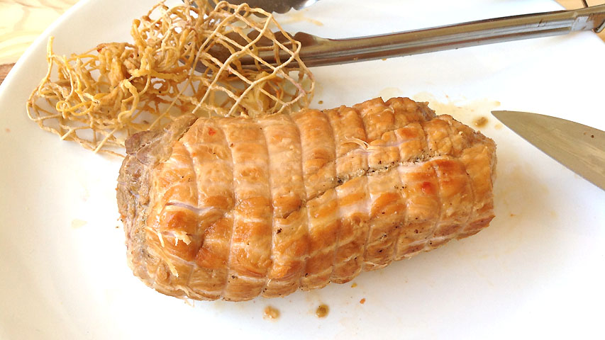 La carne se corta muy fácilmente a cuchillo pero si queremos un trabajo más profesional podemos hacerlo con un cortafiambres.