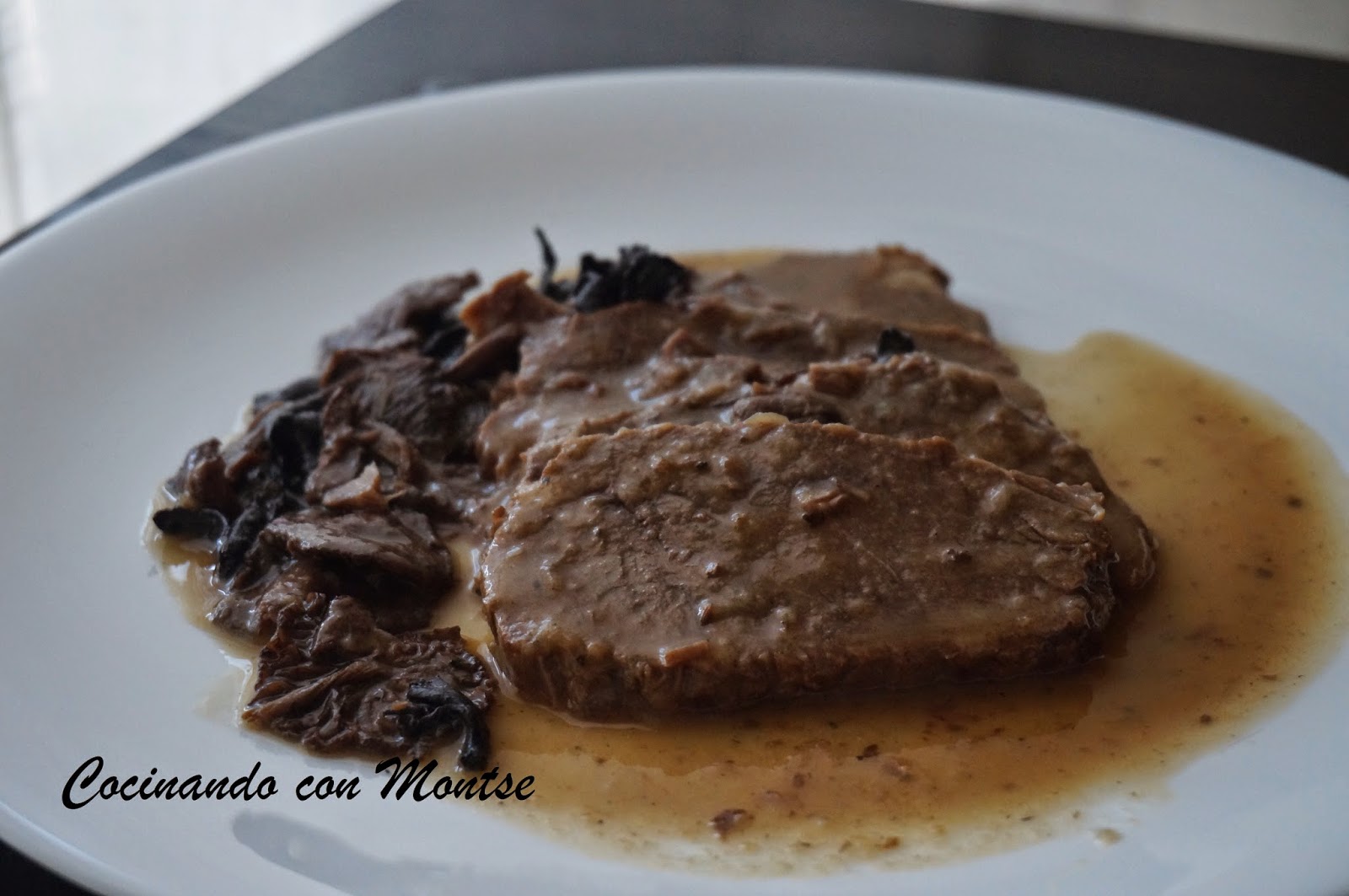 En esta ocasión la he preparado con setas secas variadas, ya que dan un sabor buenísimo a la carne y la salsa, aparte podéis preparar unas verduras cocidas, patatas fritas o un puré de patatas para acompañar, os aseguro que gustará y con poco trabajo.