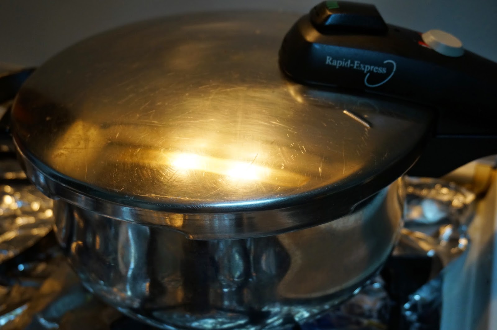 Y cerramos la olla, cuando empiece a salir vapor lo dejaremos unos 15 minutos y apagaremos.