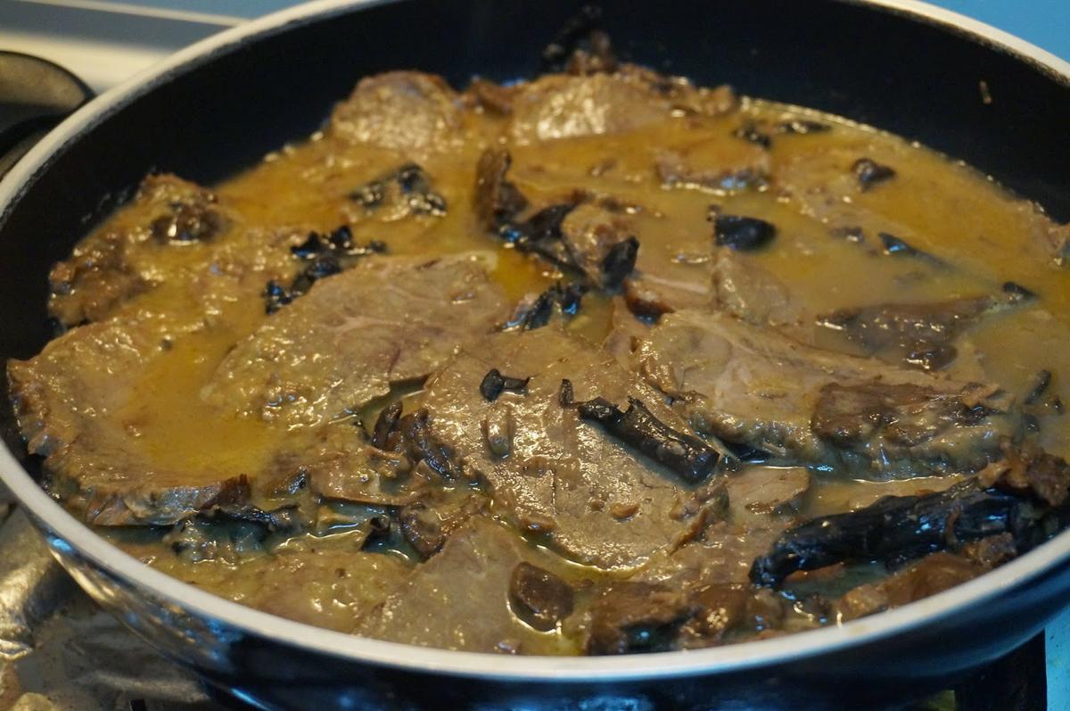 También echaremos un vaso pequeño del agua de las setas a la olla, le dará mucho sabor a la carne.