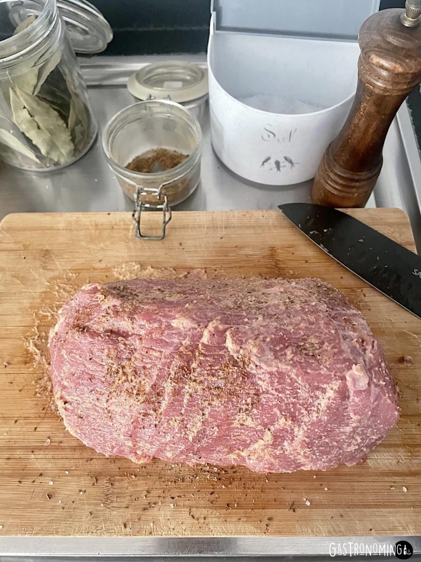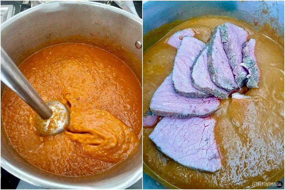 Además, simplificamos muchos pasos y créeme si te digo que no vas a echar en falta ninguno de ellos. No te compliques, sigue estos pasos, que si no quieres hacerlo “guisado” con la salsa, quédate con las indicaciones de la cocción de la carne y así puede tener una pieza de carne jugosa para otro tanto de recetas, sándwiches, rellenos, terminar a la parrilla, ahumador o bañar con otro tipo de salsa.