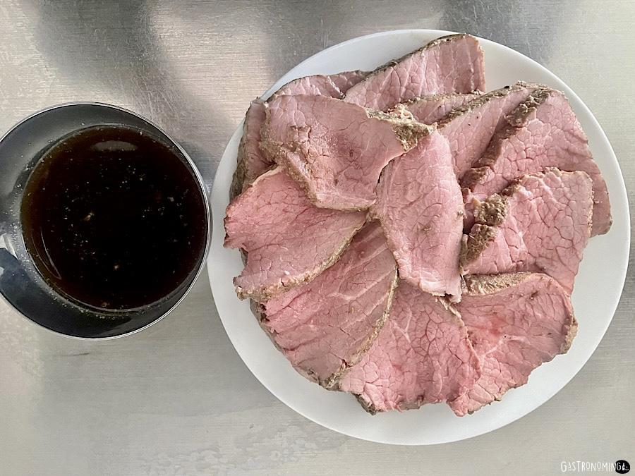 Por cierto, es cuánto al sabor, nada que objetar, pero mi relación de amor odio con esta receta siempre fue lo seco que quedaba la carne, entiéndaseme bien, es obvio que con una buena cantidad de salsa no es un plato “seco”, pero vamos a ver, un corte de carne como este, sin infiltración, sin colágenos en su interior y sometido a dos horas de cocción como manda la tradición culinaria, el corte sí o sí se queda seco.