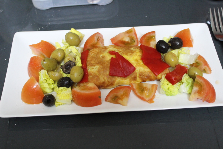 Troceamos el pimiento del piquillo que nos resta y decoramos con el la tortilla.