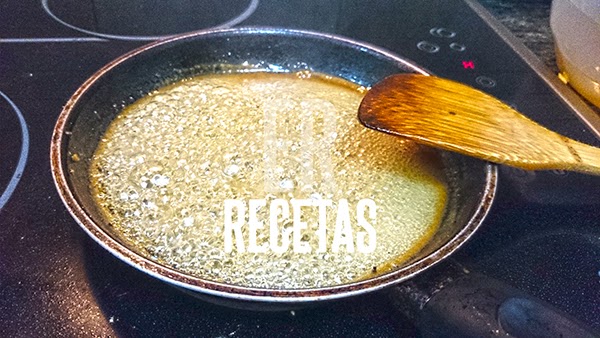 Primero calentaremos a fuego medio el líquido y añadiremos el azúcar poco a poco.