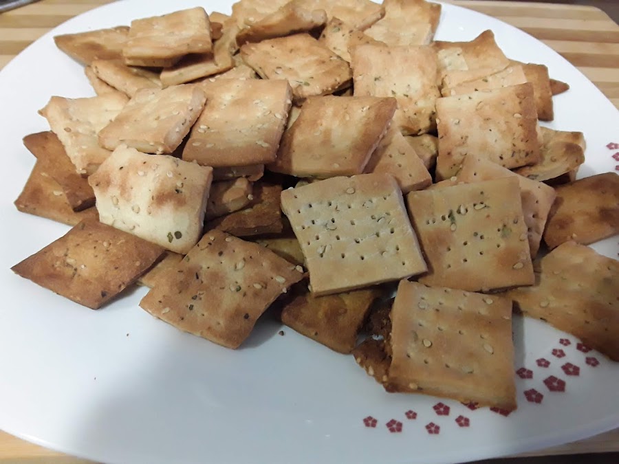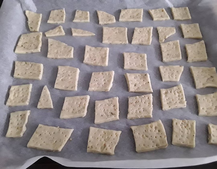 ahora ya cogeremos una bandeja para horno y ponemos colocaremos papel para horno (previamente habremos puesto a calentar el horno a 180°) , y sobre éste iremos colocando las regañas sin que se peguen unas con otras horneamos durante unos 10 min. cada lado a 180° , iremos mirando de vez en cuando para que no se nos quemen, el tiempo variará dependiendo de la potencia de cada horno, cuando estén las sacamos ,dejamos enfriar, y ya podéis servir para aperitivo, o para picar antes de comer, espero que os gusten, para que se conserven crujientes ponerlas cuando se enfrien en un recipiente hermético