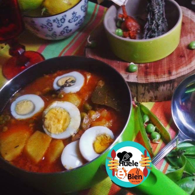 Este guiso de arvejas es una receta suya. ¡Un plato exquisito! que esta para mojar pan, chuparse la cuchara, el plato y meter la cabeza en el caldero.