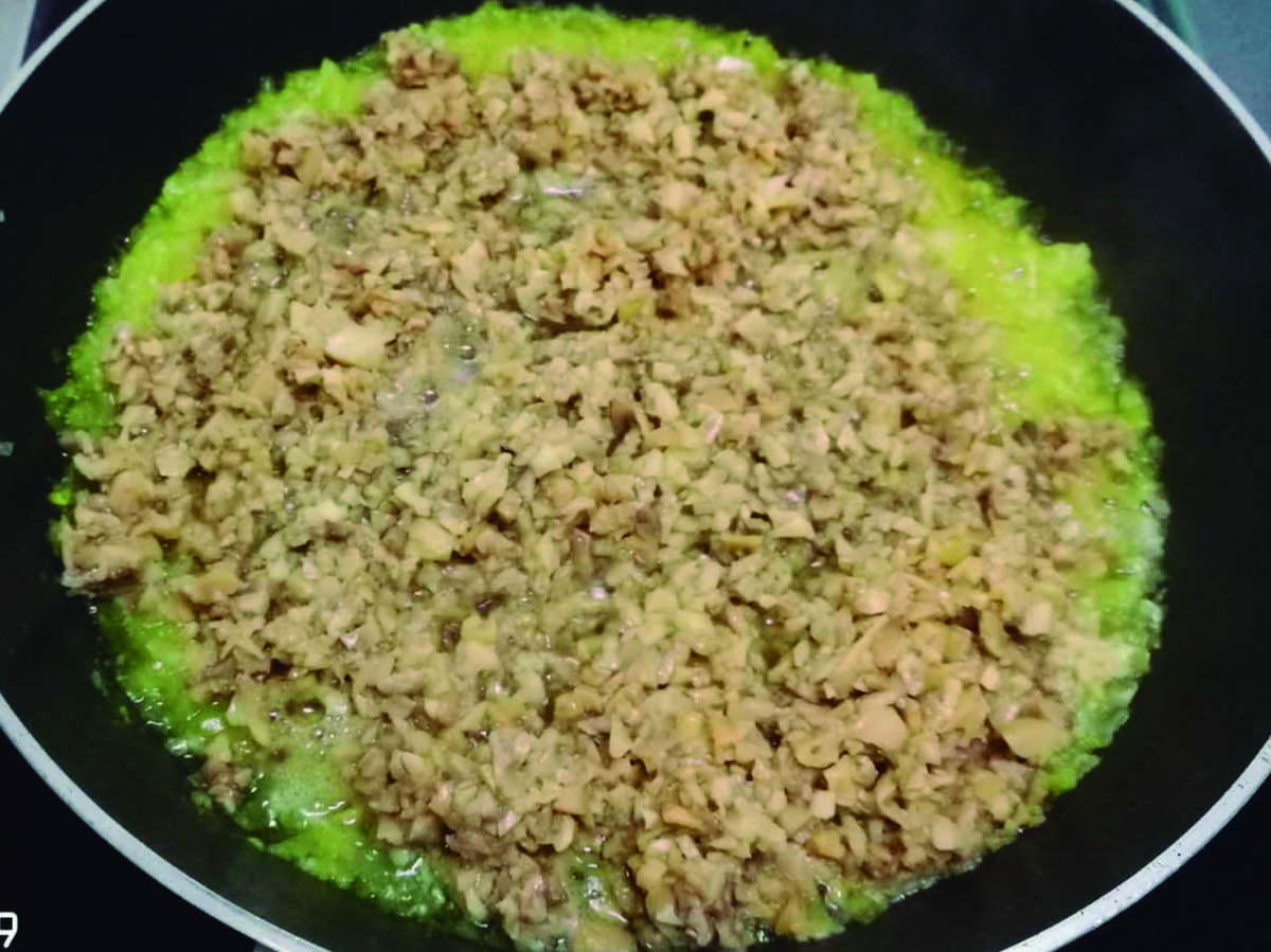 Si usamos champiñones de lata los escurrimos bien y los picamos en la picadora muy finito. Los echamos sobre la cebolla ya pochada y removemos.