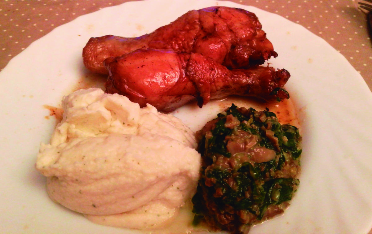 Si lo dejamos solo como acompañante ya lo tenemos listo para servir. Podemos usarlo para acompañar unos muslitos de pollo con puré de coliflor.