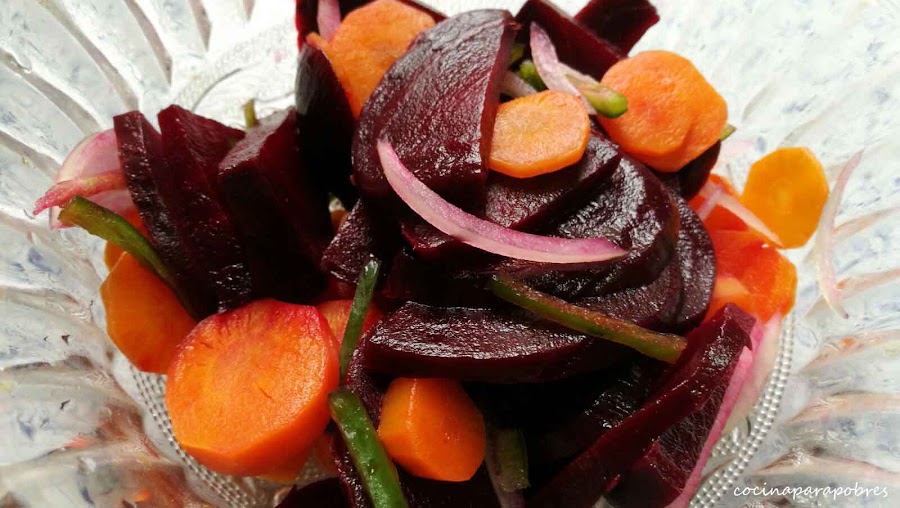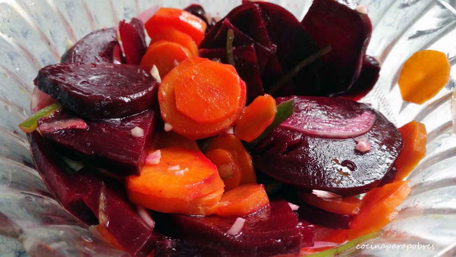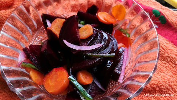Justo el fin de semana pasado, en casa de mis padres, me pusieron un aliño que me encantó, era casi igual que este pero sin zanahorias. Lo sé, soy una copiona, culito veo culito quiero.. pero estaba tan bueno ese aliño y casualmente tenía en casa remolacha cocida con la que también preparé el bizcocho que os enseñé el día anterior.