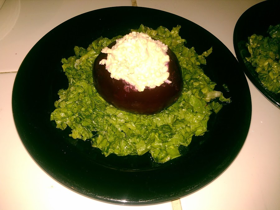 Para emplatar se ponen las beterragas o remolachas sobre una cama de ensalada de hojas verdes, en este caso una rica ensalada de lechuga hidroponica...